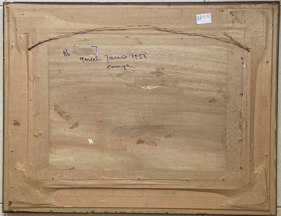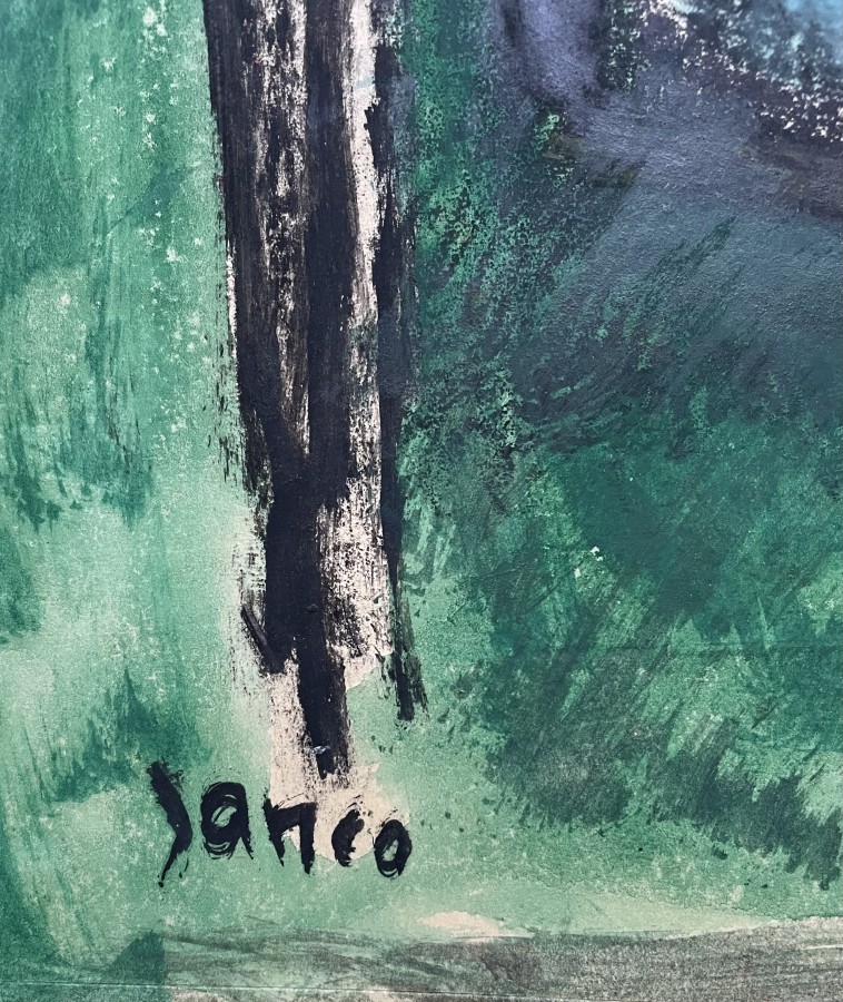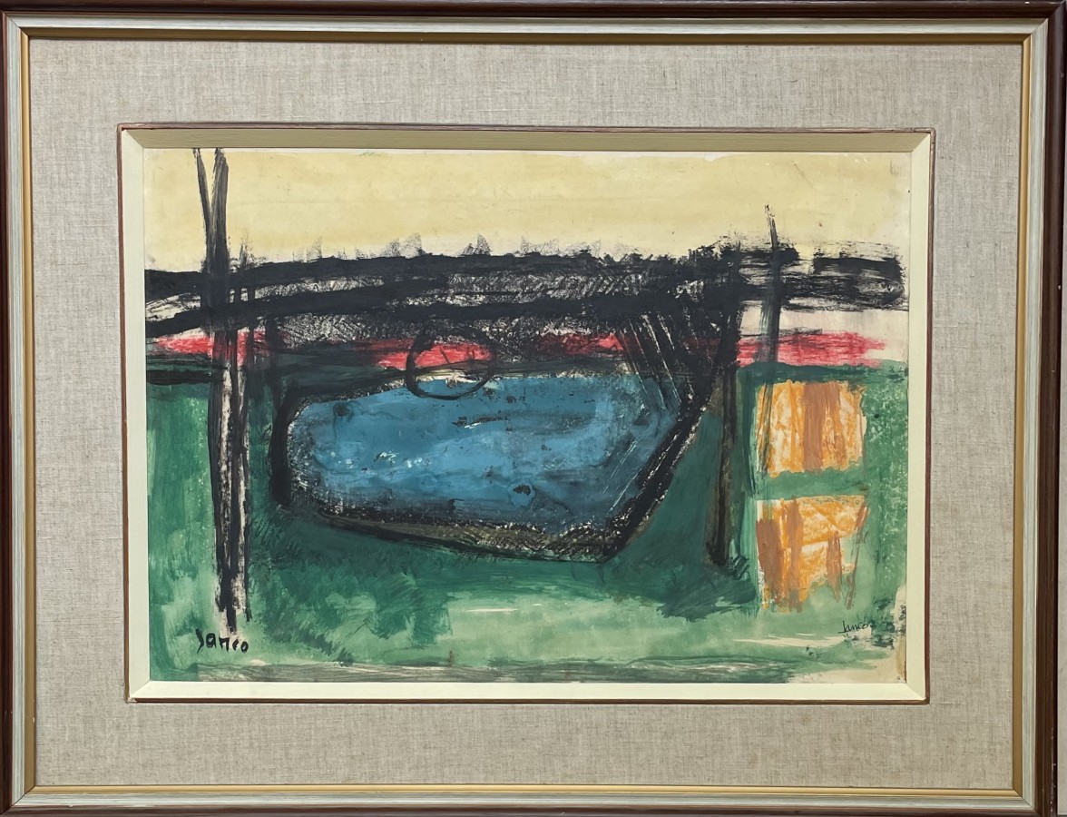 Marcel Janco, painter, born 1895, Bucharest, Romania. Immigrated 1941. 1915 Went to Switzerland and joined Hugo Bell, Jean Arp. 1916 -19 An originator of the Dada movement and participated in all its activities. Painted the famous masks in the style of African masks which were exhibited in "Cabaret Voltair". Painted abstract reliefs, combining expressionism and cubism. 1921 After a short time in Paris, returned to Bucharest, worked in architecture and was active in artists groups. 1948 A founder of New Horizons Group. 1953 A founder of the artists villege Ein Hod. Died 1984. .