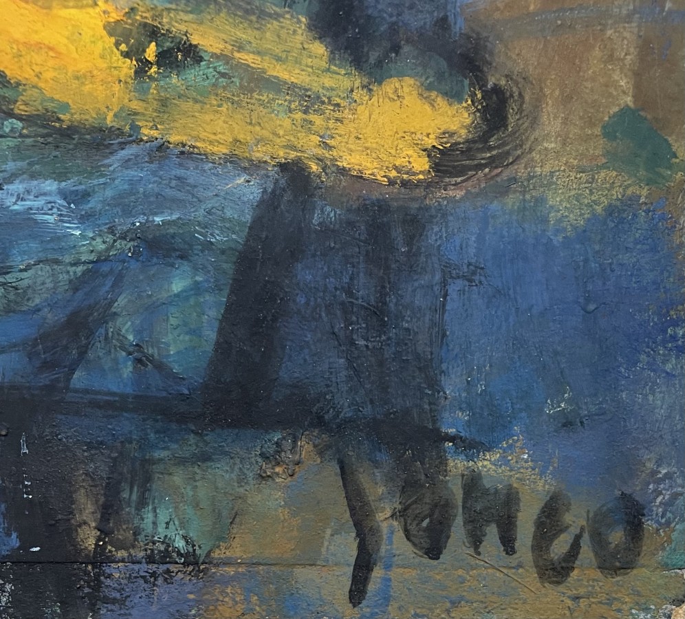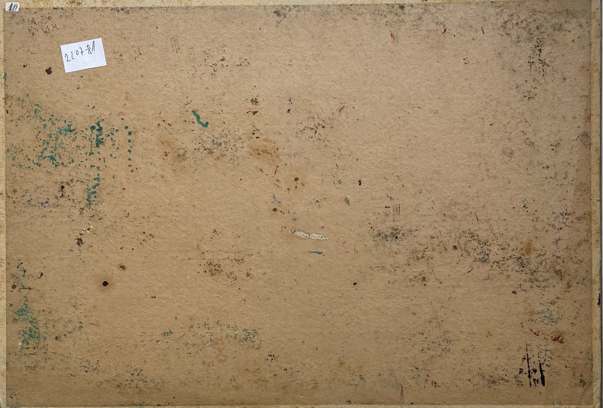 Marcel Janco, painter, born 1895, Bucharest, Romania. Immigrated 1941. 1915 Went to Switzerland and joined Hugo Bell, Jean Arp. 1916 -19 An originator of the Dada movement and participated in all its activities. Painted the famous masks in the style of African masks which were exhibited in "Cabaret Voltair". Painted abstract reliefs, combining expressionism and cubism. 1921 After a short time in Paris, returned to Bucharest, worked in architecture and was active in artists groups. 1948 A founder of New Horizons Group. 1953 A founder of the artists villege Ein Hod. Died 1984. .