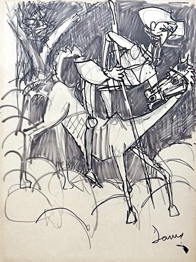 Marcel Janco, painter, born 1895, Bucharest, Romania. Immigrated 1941. 1915 Went to Switzerland and joined Hugo Bell, Jean Arp. 1916 -19 An originator of the Dada movement and participated in all its activities. Painted the famous masks in the style of African masks which were exhibited in "Cabaret Voltair". Painted abstract reliefs, combining expressionism and cubism. 1921 After a short time in Paris, returned to Bucharest, worked in architecture and was active in artists groups. 1948 A founder of New Horizons Group. 1953 A founder of the artists villege Ein Hod. Died 1984. .