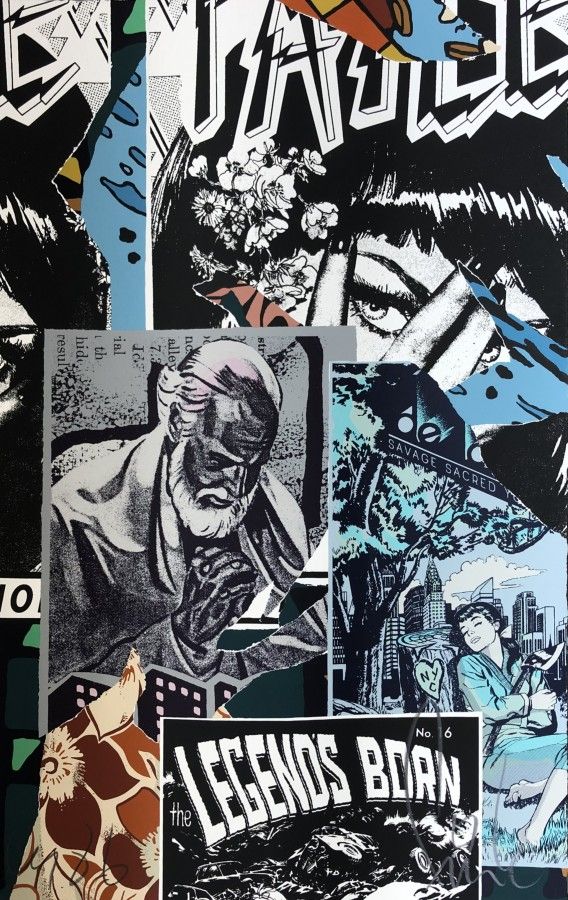Their name is an anagram of their first project, “A life.” Since its inception in 1999, FAILE has been known for a wide ranging multimedia practice recognizable for its explorations of duality through a fragmented style of appropriation and collage. FAILE raises questions about our relationship to consumer culture, religious traditions, and the urban environment by blurring the boundaries between fine art, street art, and popular culture.