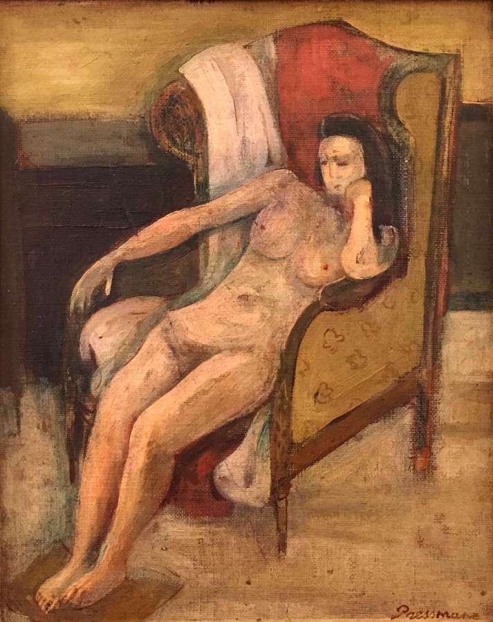 In 1932, he met Zborowski who purchased from him several paintings but who died shortly after the contract was signed. He exhibited his paintings in several Parisian exhibitions, thus acquiring some fame and the Baroness Alix de Rotschild will support him. Nevertheless, Pressmane went through difficult periods in regard to money, he needed to work as a house painter to support himself.