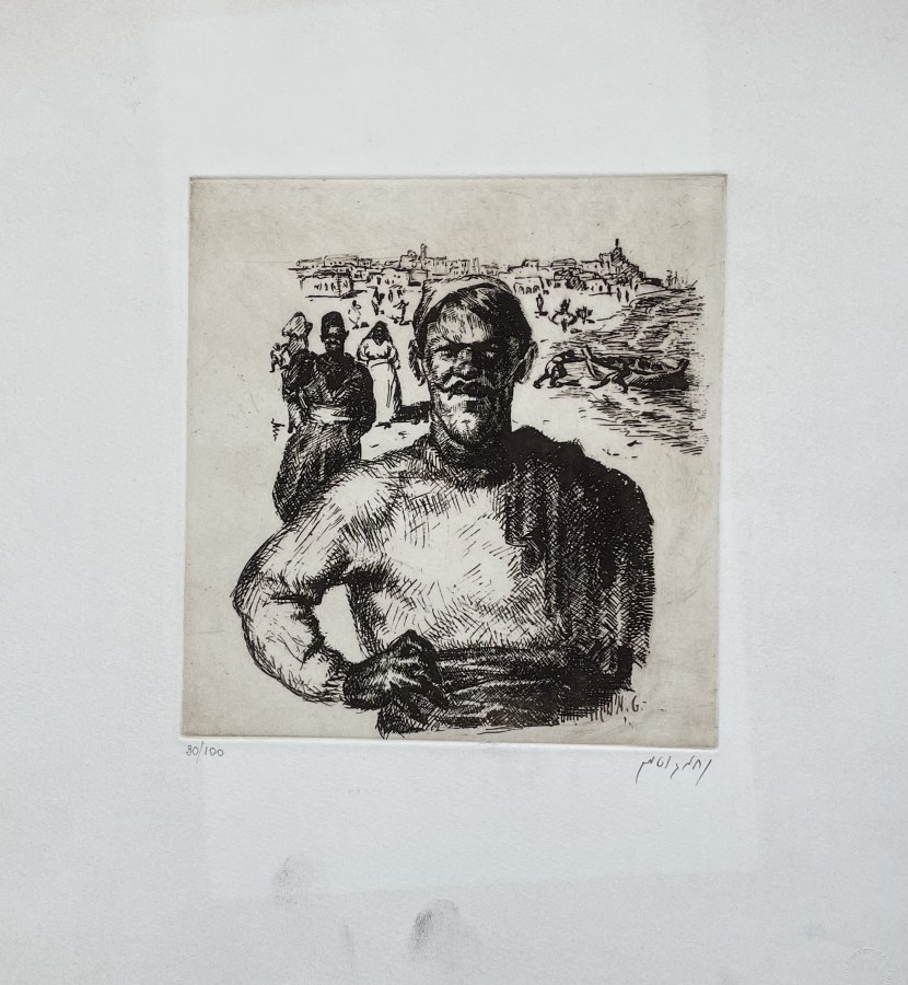 Israeli, born Bessarabia, 1898–1980 MAde Aliyah in 1905. Returning to Israel in 1927, after a long sojourn in Europe, Nachum Gutman undertook the illustration of C.N. Bialik's writings until the poet's death in 1937. His Illustrations of Bialik's "Legends" were the peak of this project, and his style- monumental, sculptural, primitive, influenced by Assyrian sculpture and Persian miniature- perfectly suited Bialik's biblical themes. Gutman was one of the major formulators of Eretz Israel art-starkly simple, earthy and powerful, aggressively asserting its sense of place. The booklet of protest illustrations by Gutman, published immediately after the 1929 riots, was the first manifestation of the dashing of the Eretz Israel myth of Arab-Jewish integration. Gutman, as one of the formulators of the idealization of the Arab in art, was the first to respond to the new identity crisis facing the Eretz Israel Jew. He was to return to the depiction of the East in his later work.