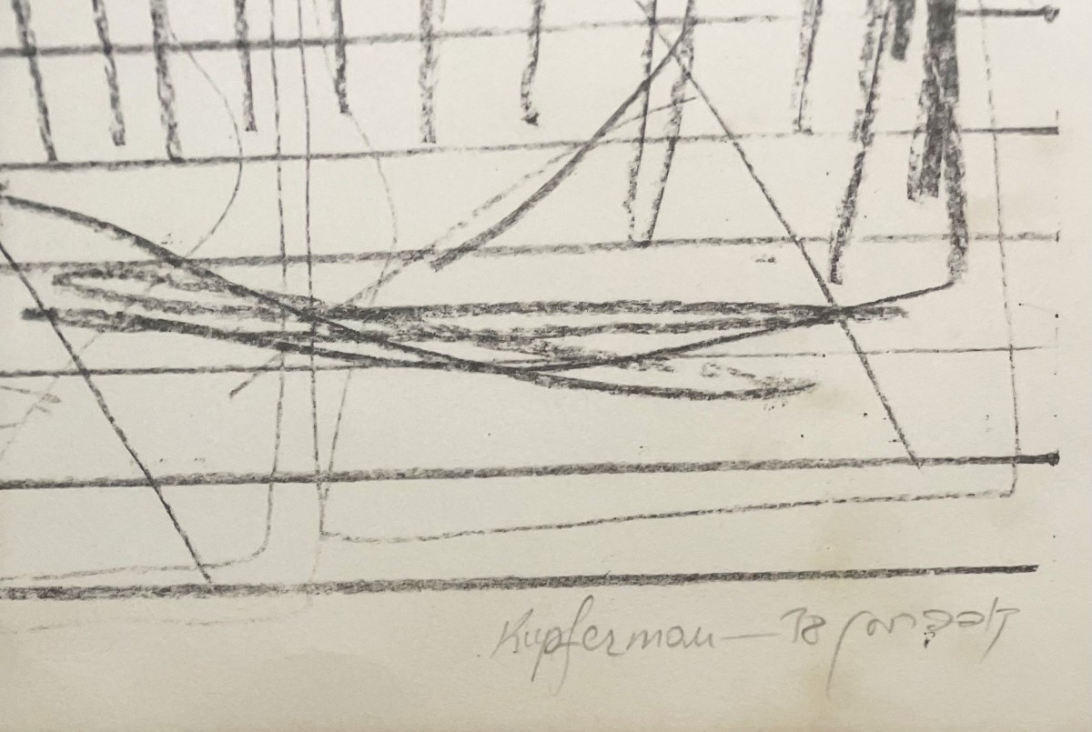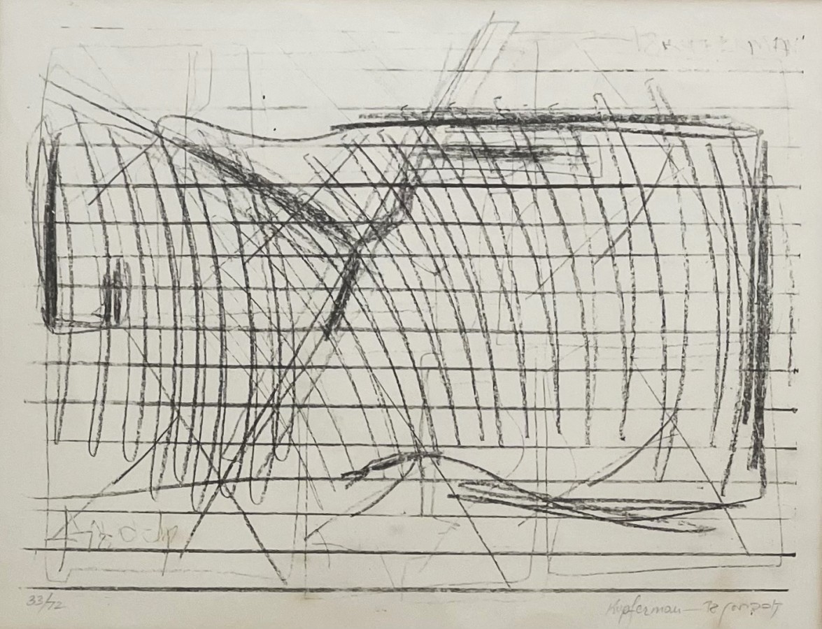 Moshe Kupferman, painter, born 1926, Poland. 1941 Exiled with his family to camps in the Urals and in Germany. Moshe Kupferman's work links recent lyric abstraction to the modernistic. It is the result of a process beginning with free, uncritical expression bordering on personal confession, and continuing with critical painting, in which the artist "erases" his "confession". The final result testifies to the preceding stages, and to the inherent conflicts in his work, between expressive drama and introspection, form and atmosphere, destruction and construction. The contradictions he succeeded in integrating into his work placed Kupferman in the front ranks of Israeli art.