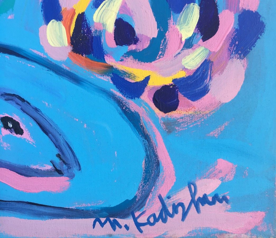 When he was 15 His father died and Kadishman left school to help support his family, while taking evening art classes with Aharon Avni. In 1950 he joined the Nahal Brigade in the Army, and was assigned to Ma'ayan Baruch, on the borders of Lebanon, Syria and Israel. He worked as a shepherd, which affected many of his works. Kadishman is famous for his colorful sheep portraits, which he began painting in 1995.