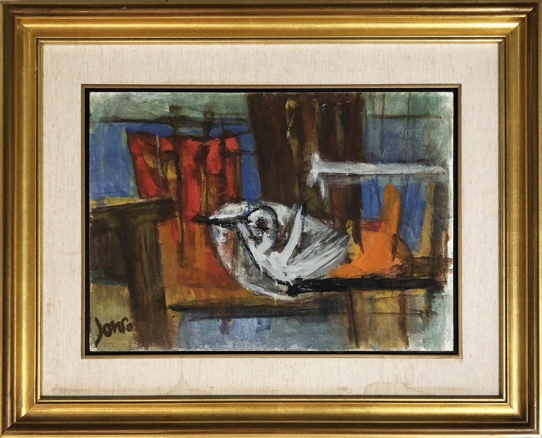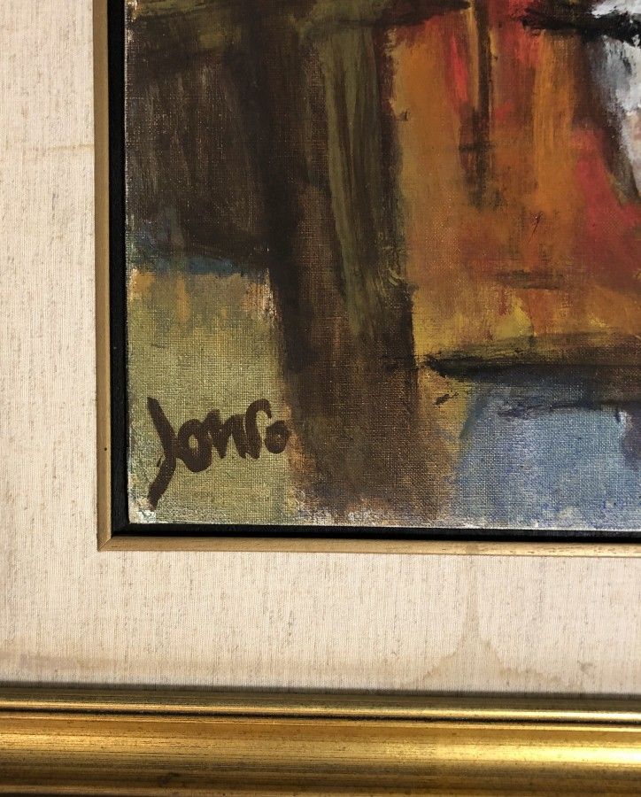 Marcel Janco, painter, born 1895, Bucharest, Romania. Immigrated 1941. 1915 Went to Switzerland and joined Hugo Bell, Jean Arp. 1916 -19 An originator of the Dada movement and participated in all its activities. Painted the famous masks in the style of African masks which were exhibited in "Cabaret Voltair". Painted abstract reliefs, combining expressionism and cubism. 1921 After a short time in Paris, returned to Bucharest, worked in architecture and was active in artists groups. 1948 A founder of New Horizons Group. 1953 A founder of the artists villege Ein Hod. Died 1984. .