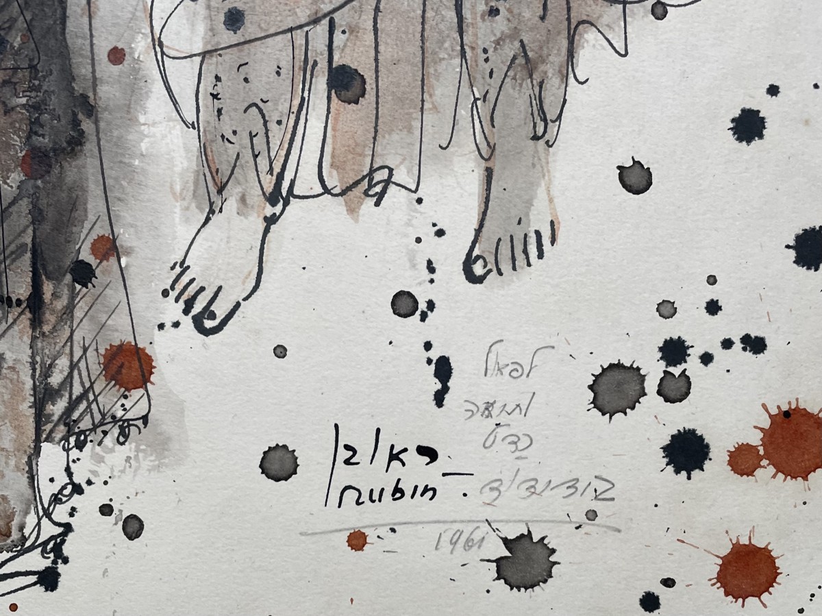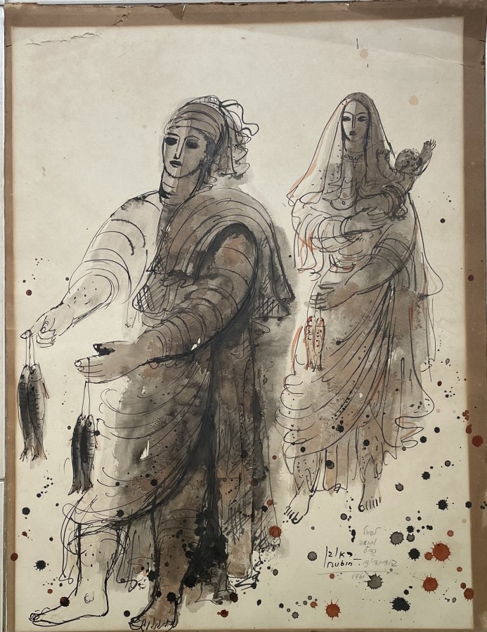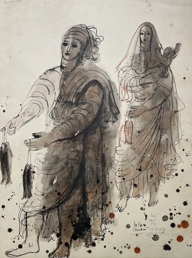 painter, born 1893, Romania, Came to Palestine in 1912. From 1948 to 1952 was first Israeli Ministry Plenipotentiary to Rumania. Represented Israel at the Venice Biennale in 1952. He lived in Paris, Jerusalem and Tel Aviv. Died in his home in Tel Aviv on October 13, 1974. His house became "Rubin House" Museum' where all his works are shown. Reuven Rubin was among the formulators of the primitivistic trend in the Eretz Israel art of the 1920s, which, in the spirit of the Zionist revival, saw the East as a primal, innocent world. His primitive linoleum cuts from his early years in the country, influenced by Medieval, German Expressionist and Modern Russian art, constitute a break with his earlier work abroad.