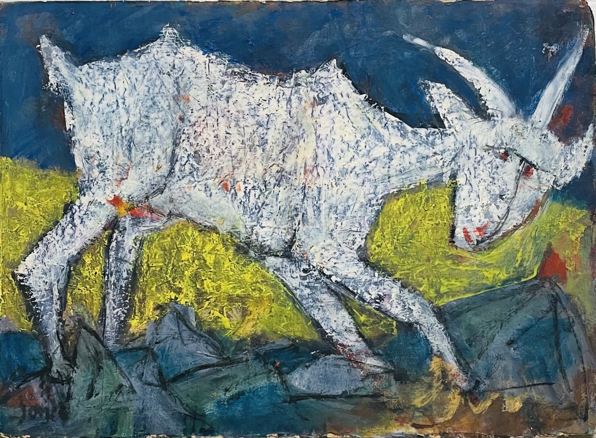 Marcel Janco, painter, born 1895, Bucharest, Romania. Immigrated 1941. 1915 Went to Switzerland and joined Hugo Bell, Jean Arp. 1916 -19 An originator of the Dada movement and participated in all its activities. Painted the famous masks in the style of African masks which were exhibited in "Cabaret Voltair". Painted abstract reliefs, combining expressionism and cubism. 1921 After a short time in Paris, returned to Bucharest, worked in architecture and was active in artists groups. 1948 A founder of New Horizons Group. 1953 A founder of the artists villege Ein Hod. Died 1984. .