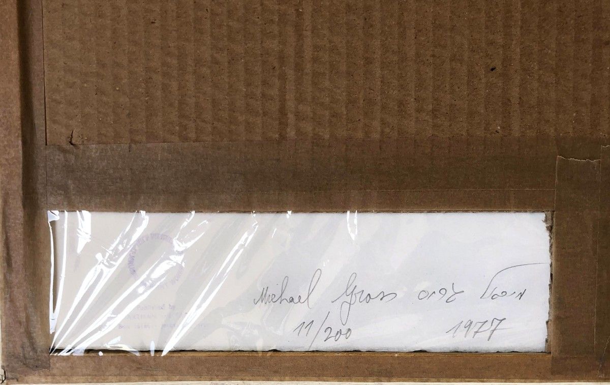 - חתום חתום, מתוארך וממוספר 11/200 בגב ההדפס.
