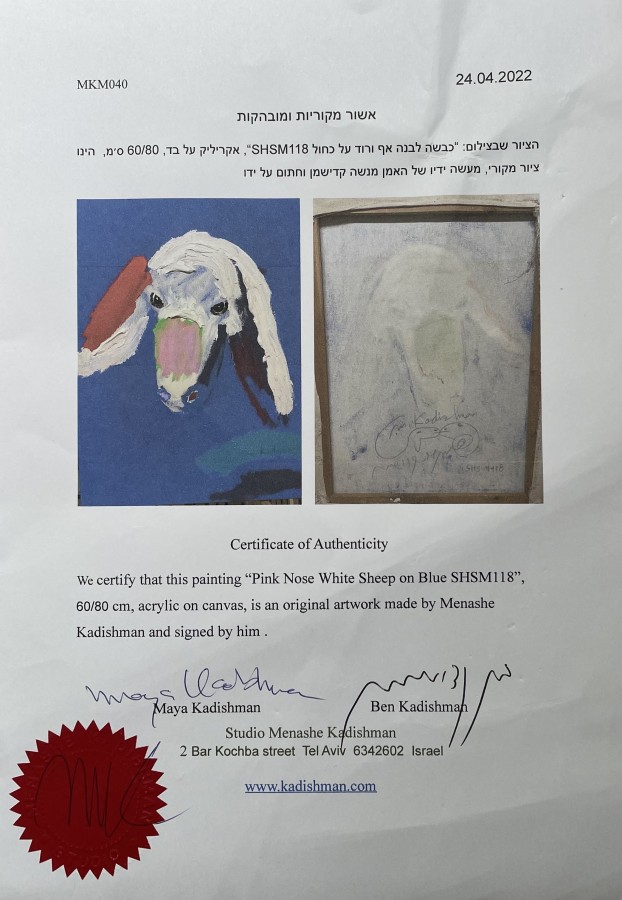 - הערות מלווה באישור מקוריות מאת סטודיו מנשה קדישמן מתוארך 22 באפריל 2024.